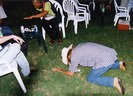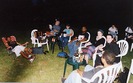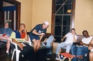 The heavens threw down rainshower poetry, so the slam moved inside (June 2002)