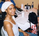 Ramona Webb, poet, preparing to slam (June 2002)